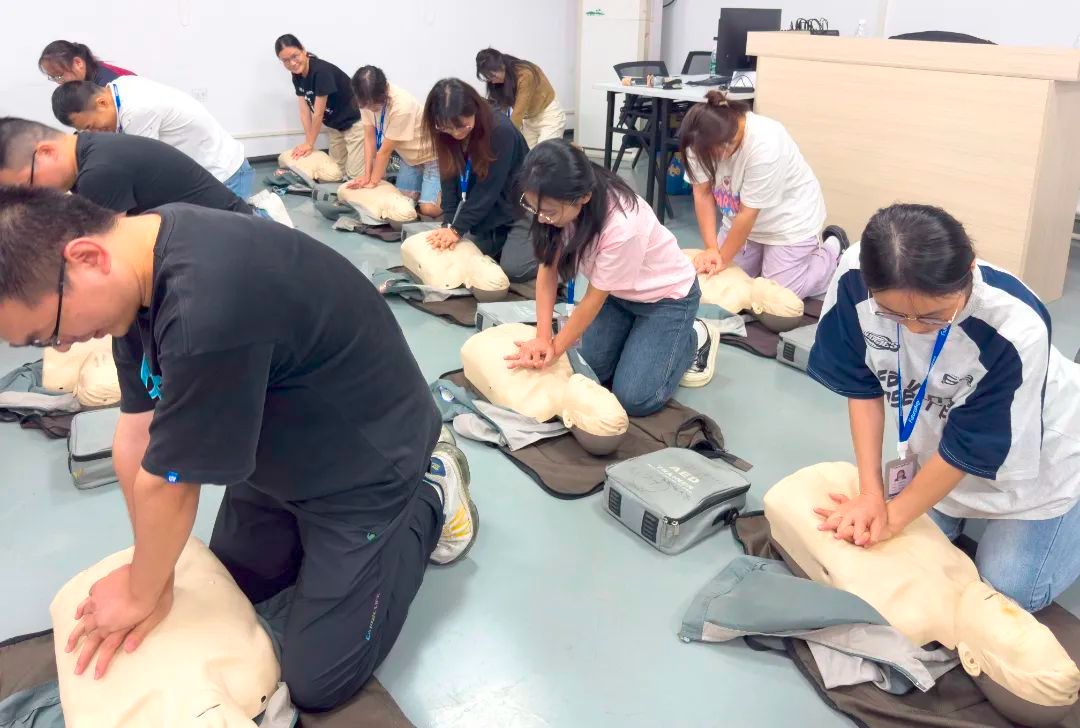 知识是力量,实践是检验。理论知识学习后,培训进入了实操环节。员工们进行了实践演练,亲身体验心肺复苏、人工呼吸、AED的使用等急救操作。在实操环节,每一位参与者都通过模拟演练,将理论知识转化为实际技能,确保在关键时刻能够冷静应对。