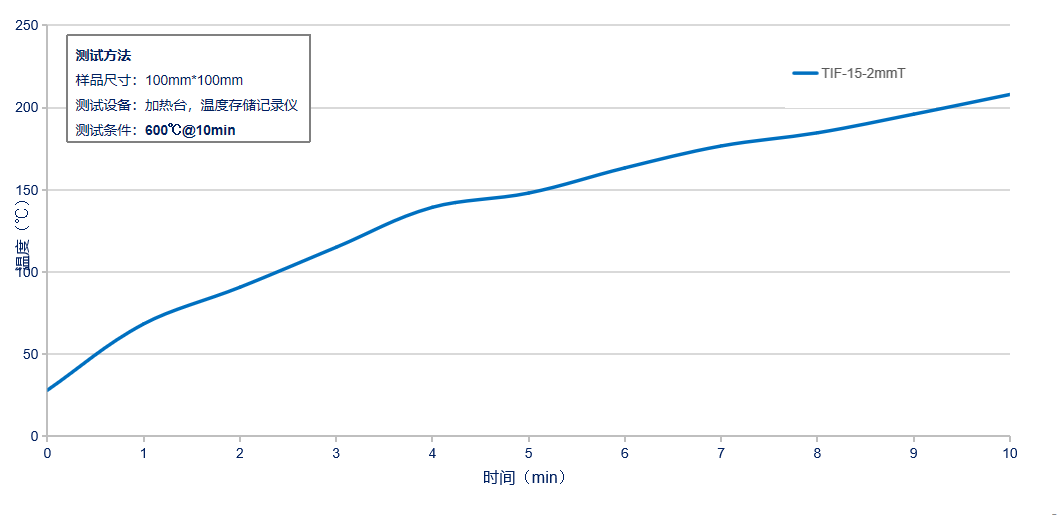 TIF系列产品隔热性能曲线(600℃,10min)
